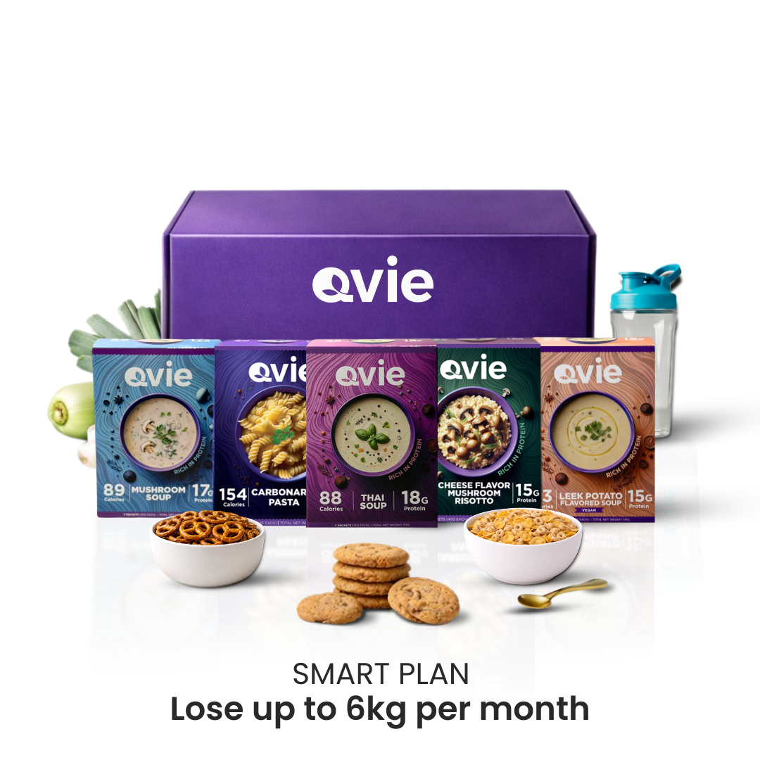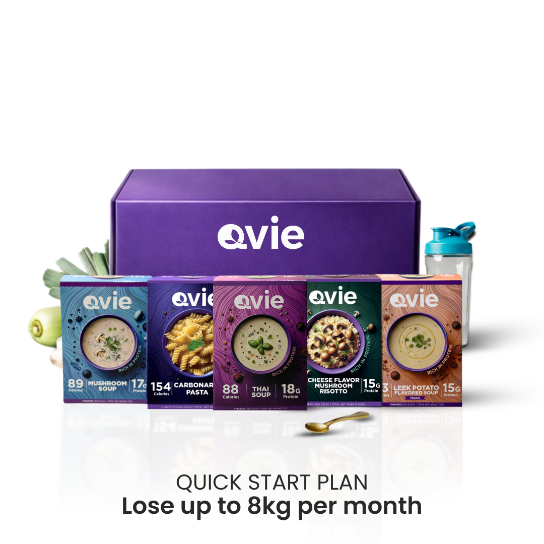 Our delicious Qvie Meal replacements are nutritionally balanced, contain the highest quality of protein and contain 24 vitamins and minerals. You will eat every few hours to help keep hunger away as your body burns fat and you lose weight.